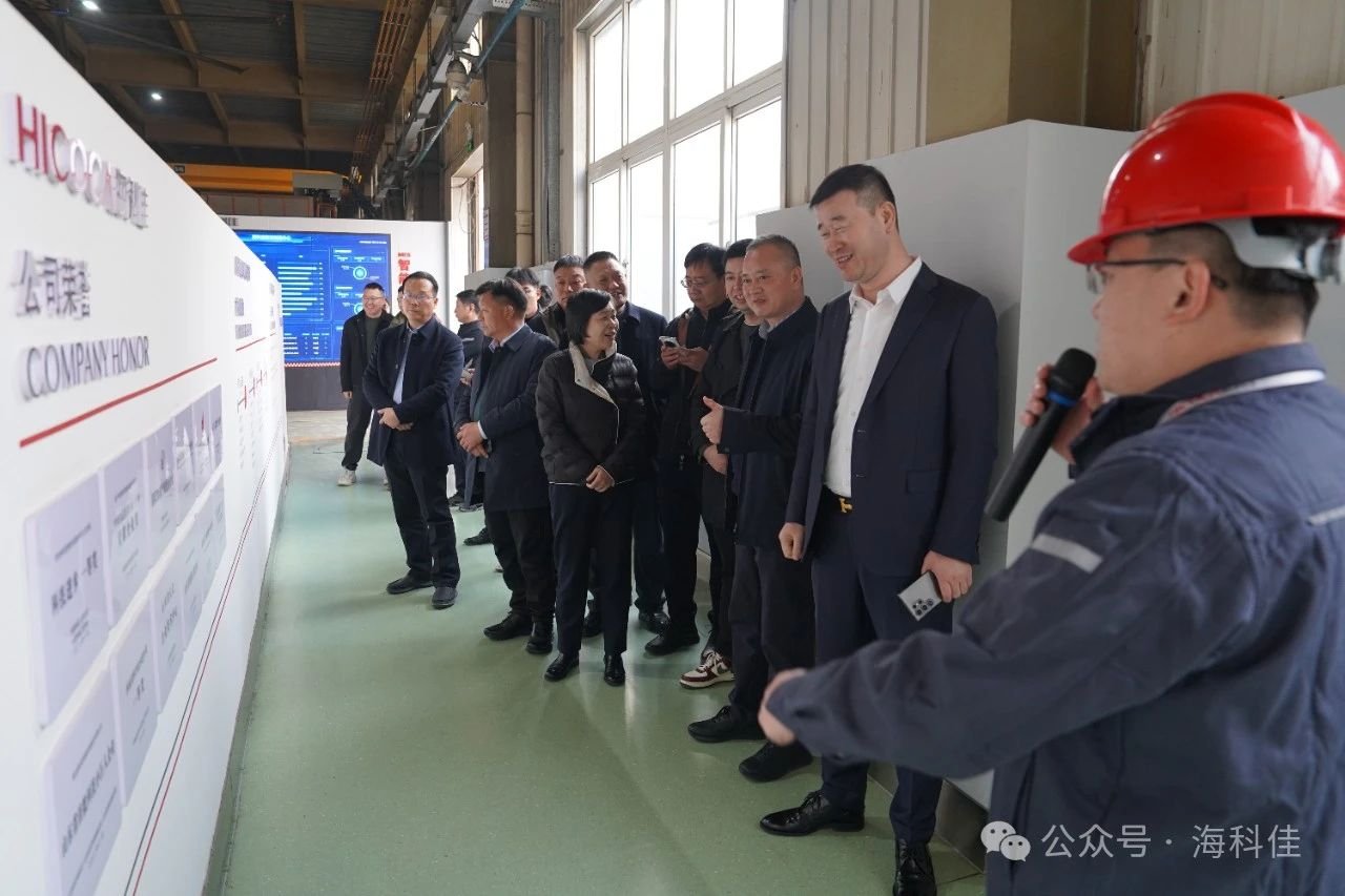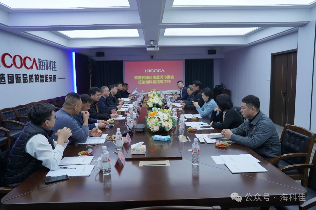 On December 10th, Wang Baolei, Vice Chairman of the Linyi Municipal Committee of the China Democratic Construction (CDG), Deputy Mayor of Yuanhui District, and Standing Committee Member of the Linyi Municipal Political Consultative Conference, led a delegation of business leaders from the Linyi Municipal Committee of the CDG to visit and exchange ideas with Qingdao HICOCA Intelligent Technology Co., Ltd. Chen Cheng'yi, Standing Committee Member of the Qingdao Municipal Political Consultative Conference, Full-time Vice Chairman of the Qingdao Municipal Committee of the CDG, and a Second-level Inspector, accompanied the delegation. Both sides engaged in in-depth discussions on the CDG's work experience and the innovative development of enterprises. During the visit, HICOCA introduced its development in various areas, including industry sectors, R&D, and corporate management, to the delegation, and highlighted the significant benefits and positive feedback achieved by its production equipment for flour-based and rice-based products in the market.