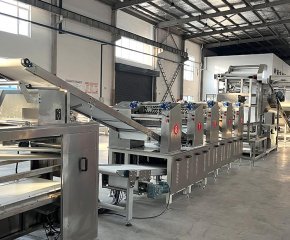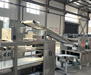 The folded dough sheet is then cut and shaped using a stamping machine. The dimensions of the cutting tool can be adjusted according to the product size, and it can also be used to cut other similar products, such as dumpling wrappers.