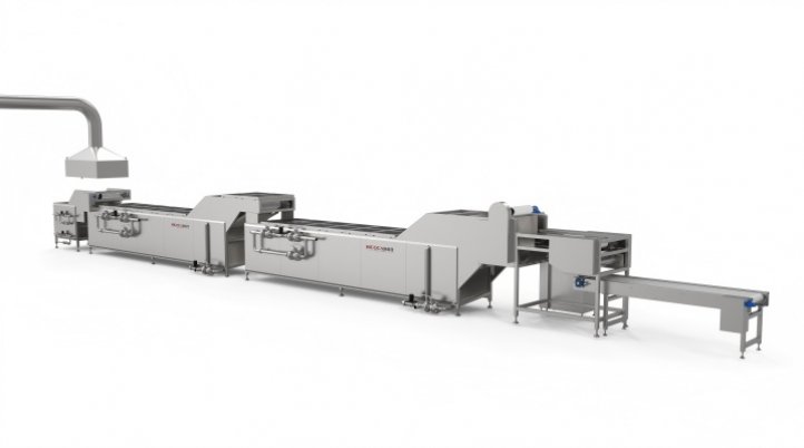 - A PLC system automatically controls the cooling water temperature and time to achieve the desired moisture content and toughness after blanching. The water is then filtered and transported to the packaging section.