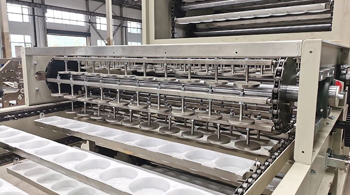 ◆ The rollers are cast high-chromium alloy rollers, resulting in a smooth surface finish and precise sheet thickness. The gap between each pair of rollers is automatically adjusted using a servo control system.