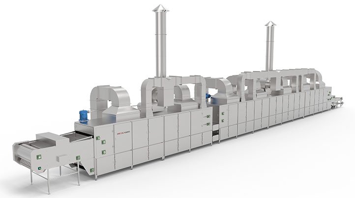 ◆The air intake is divided into three layers, with air entering from the front and back of each layer. The airtightness between the upper, middle, and lower layers is excellent. The use of a low-pressure steam source significantly reduces energy consumption (approximately 350-400 kg of steam per 1000 kg of finished product, representing a reduction of over 80%). Cleaning and lubrication nozzles are installed internally.