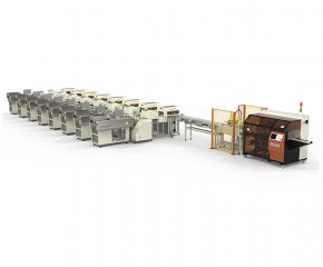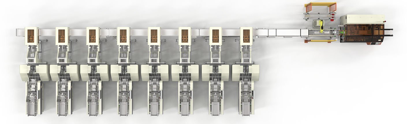 Tray-forming and product-loading robot: The first of its kind in the industry. Using a U-shaped paperboard tray in the packaging process results in better 3D shape formation and a more attractive overall package appearance.