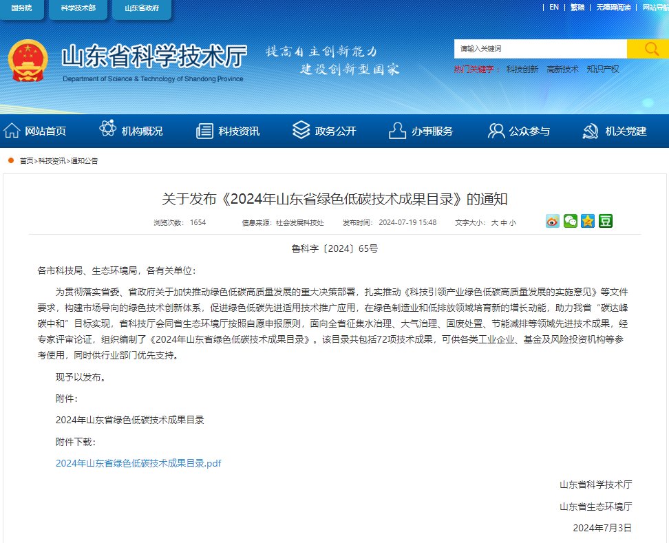 Recently, the Shandong Provincial Department of Science and Technology and the Shandong Provincial Department of Ecology and Environment jointly released the "List of Green and Low-Carbon Technology Achievements in Shandong Province for 2024," and the "Waste Heat Recovery and Energy-Saving Drying Technology and Equipment" project submitted by Qingdao HICOCA Intelligent Equipment Technology Co., Ltd. was successfully selected.